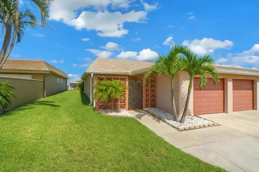 One or more photo(s) has been virtually staged. Welcome to Boca Ciega Point East, the hidden gem of 55+ waterfront living in beautiful Saint Petersburg! This stunning 2-bedroom, 2-bath end-unit villa is fully remodeled and move-in ready with over 1,400 sq ft of heated/cooled space and an oversized 1-car garage. Boasting luxurious wood-tone vinyl flooring, this home showcases designer touches from top to bottom. The kitchen is a showstopper with gorgeous blue wood cabinetry, sleek quartz countertops, gold hardware, stainless steel appliances, and an open layout that flows seamlessly into the dining and living areas. Natural light pours in through extra end-unit windows and glass sliders leading to both a private front patio and a huge back deck with boat dock. Enjoy sunset views, dolphin sightings, and fishing right from your backyard! The primary suite offers deck access, a large walk-in closet, and a luxurious en-suite bath featuring a quartz vanity, subway-tiled walk-in shower, glass doors, and penny-tile flooring. The second bedroom, located at the front of the home, provides direct access to the front patio—ideal for guests or a home office. Enjoy year-round resort-style amenities including a heated/cooled pool, tennis, pickleball, shuffleboard, and bocce courts. Two clubhouses are being fully renovated—one ready for social events by the end of October, and the other with a library, gym, and office space ready by November. Boca Ciega East is a gated, secure community, offering peace of mind and an active, social lifestyle. Don’t miss this rare opportunity to own a waterfront villa with boat access in a vibrant intracoastal community. Whether you're a full-time resident or a seasonal snowbird, this is Florida living at its finest!
